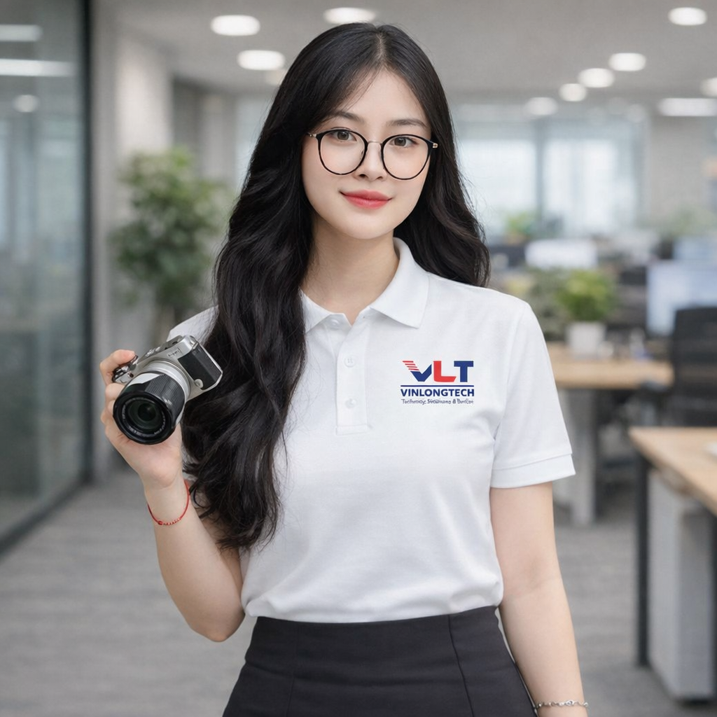 Logo Vinlongtech (VLT) được đặt trang trọng tại ngực trái – vị trí gần trái tim, thể hiện niềm tự hào và sự gắn bó của mỗi nhân viên. Tại Đồng Phục Hồng Hà, chúng tôi sử dụng công nghệ in decal nhiệt cao cấp hoặc thêu vi tính 4.0, đảm bảo logo sắc nét đến từng chi tiết nhỏ nhất, bền màu tuyệt đối qua hàng trăm lần giặt.